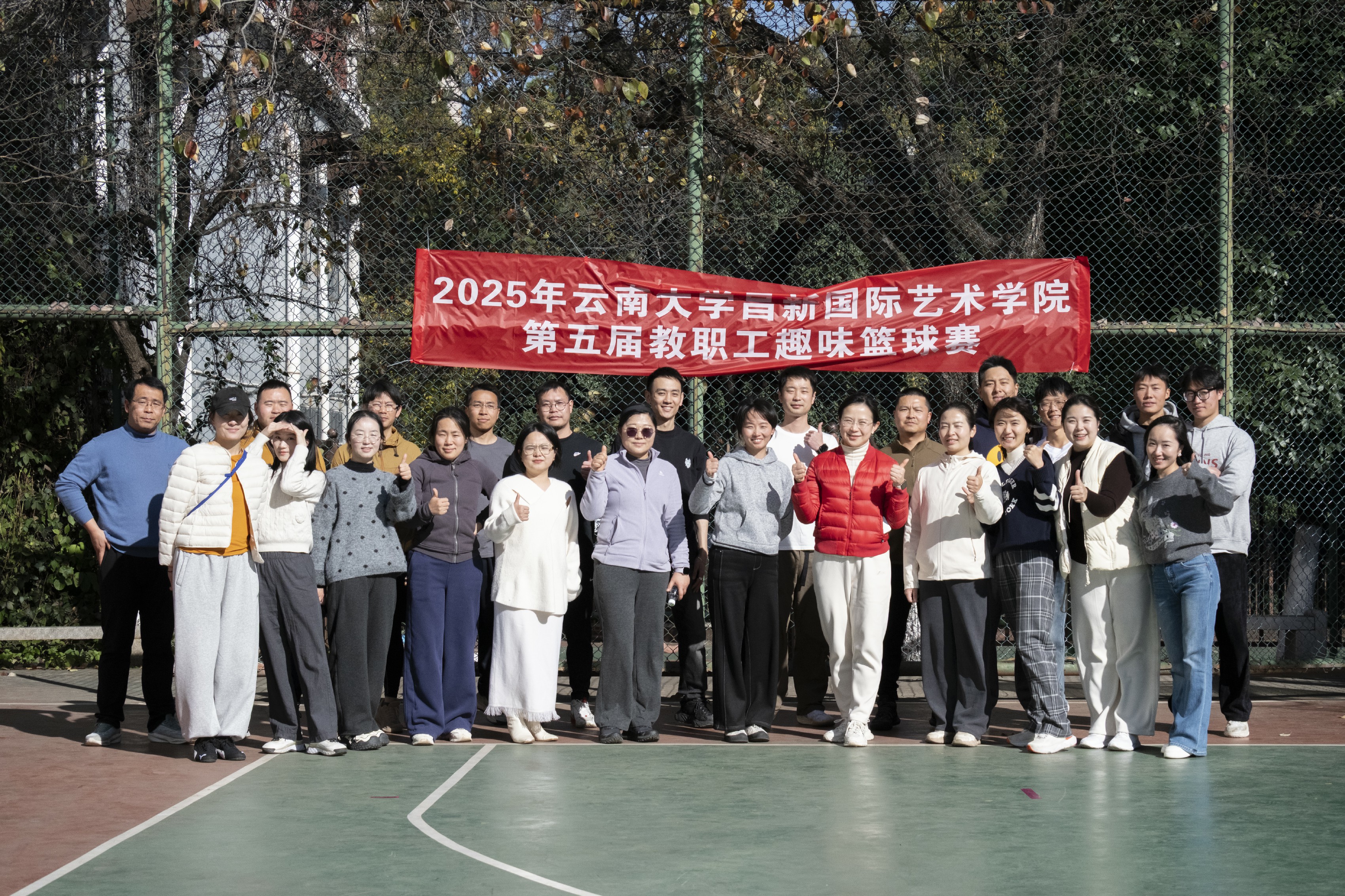 在银杏叶逐渐铺满校园的时节,伴随着和暖的微风,云南大学昌新国际艺术学院工会在党政领导的鼎力支持下,成功举办了第五届教职工趣味篮球赛。全院30余名教职工与学生代表踊跃报名、积极参与,大家暂别案头的忙碌,在运动与协作中挥洒汗水,在欢笑与呐喊中释放活力,为校园增添了一道充满动感与温情的风景线。