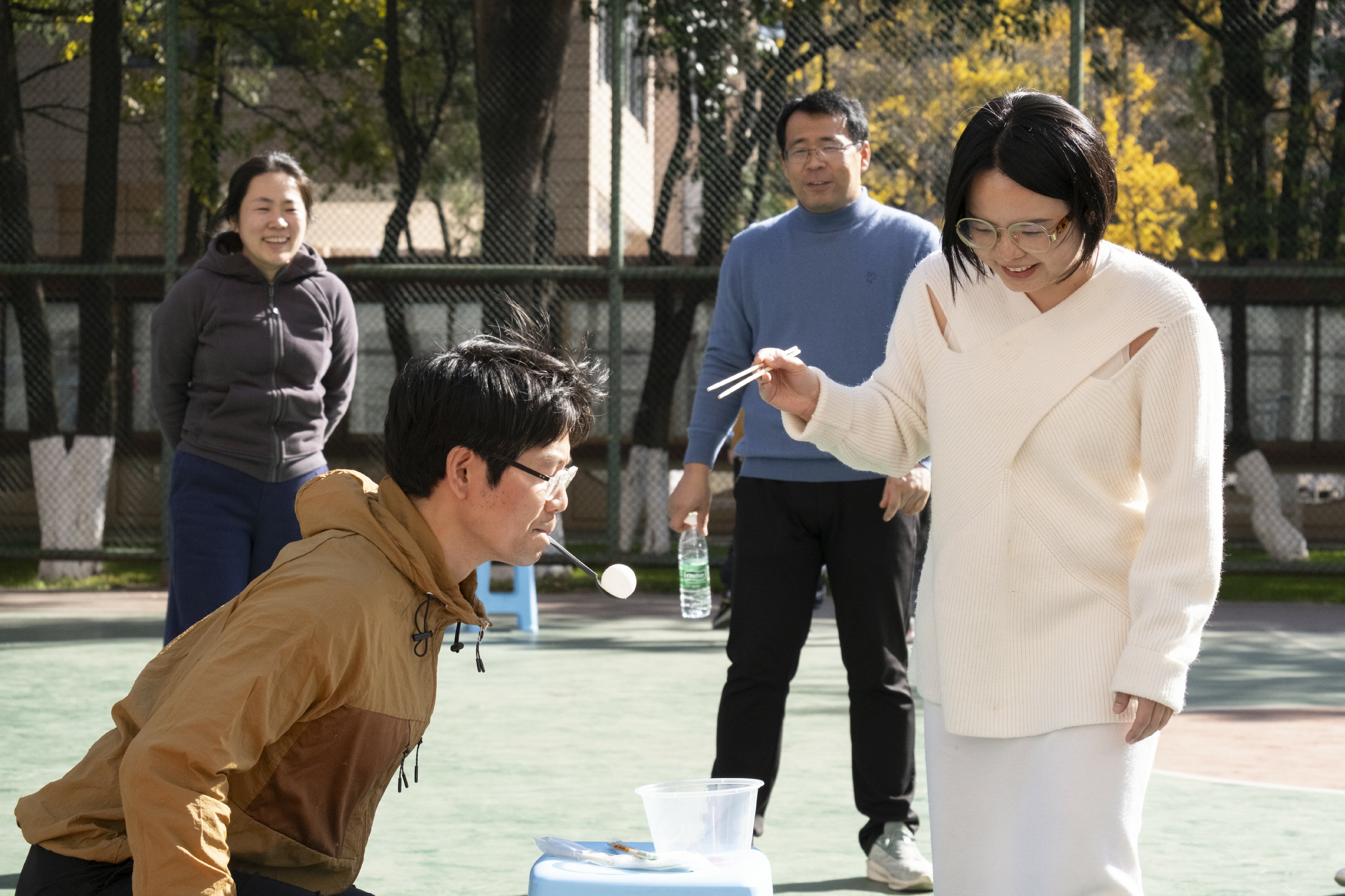 本次趣味项目环节以团队为单位,设置六项趣味运动项目。“开心投球”“你画我猜”“趣味投壶”是新设计的活动项目,在这些项目中,教职工们需彼此搭配高质量完成项目,又要争取速度为团队整体“加分”。大家纷纷出谋划策,有的负责完成比赛项目,有的负责协调队员,有的负责稳住道具,在欢声笑语中展现出极强的团队协作能力。“国球接力”“暴走螃蟹”“竞速跳绳”三个项目以锻炼体能为主,团队成员精准适配不同赛事需求,依据自身体能特长各展所长。擅长竞速的教职工在“暴走螃蟹”的项目中展现速度冲刺;擅长平衡的教职工在“国球接力”的项目中以出色的肢体协调性、灵活的应变能力与高效的团队衔接;凭借充沛的耐力的教职工在“竞速跳绳”项目中展现出稳定的身体素质和专业运动功底。