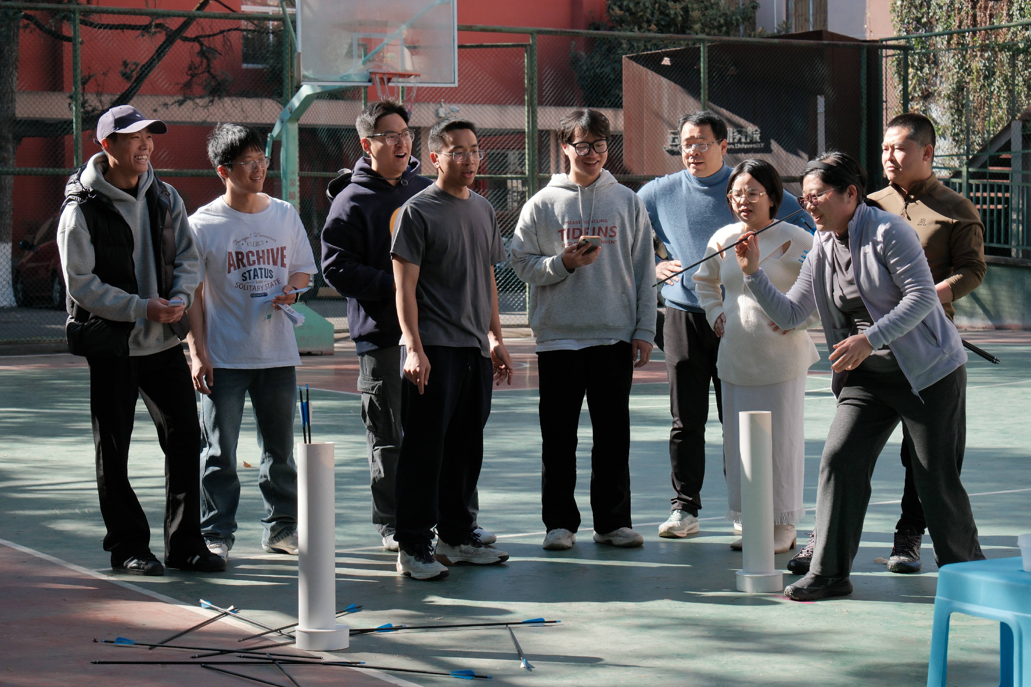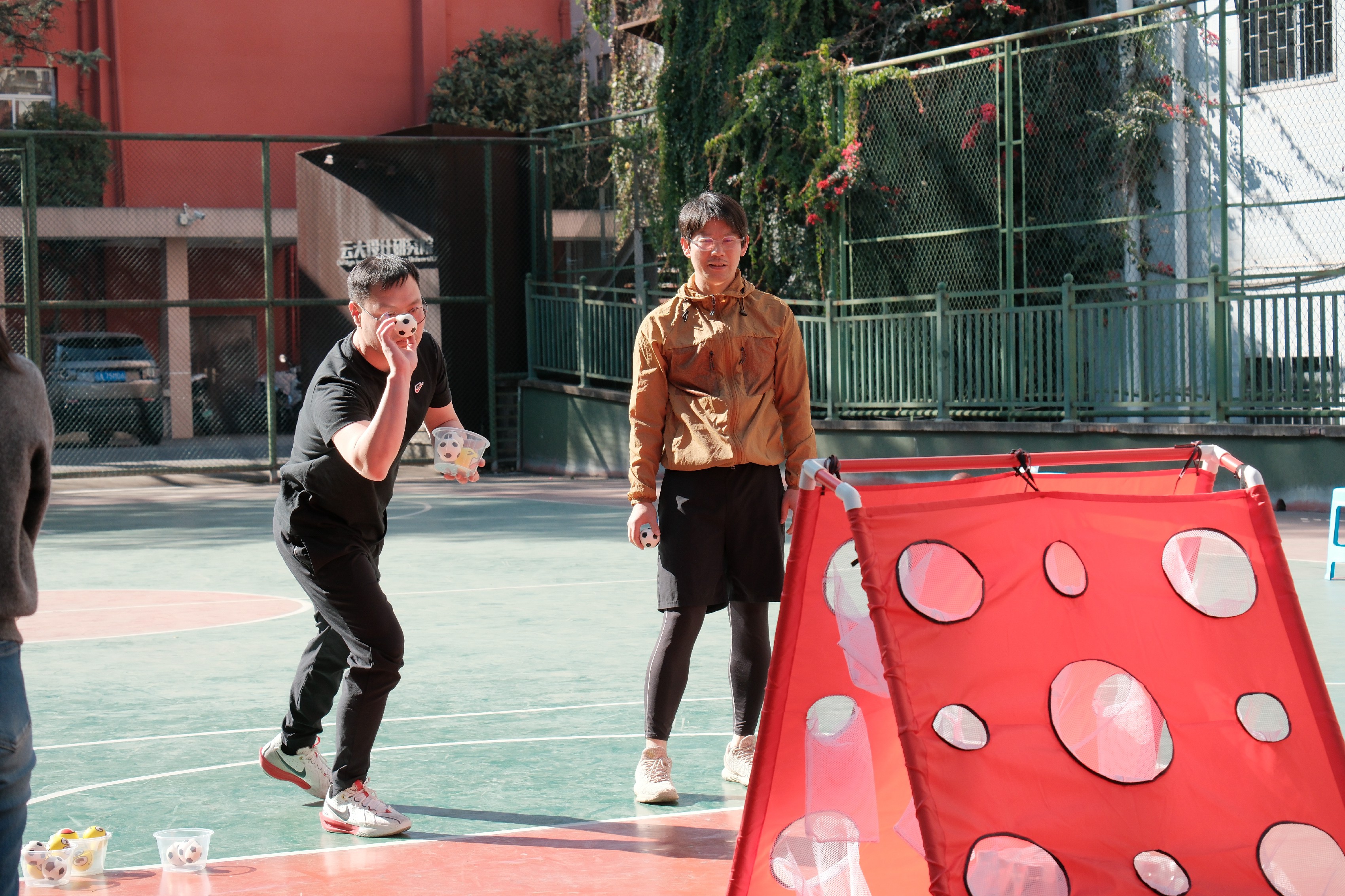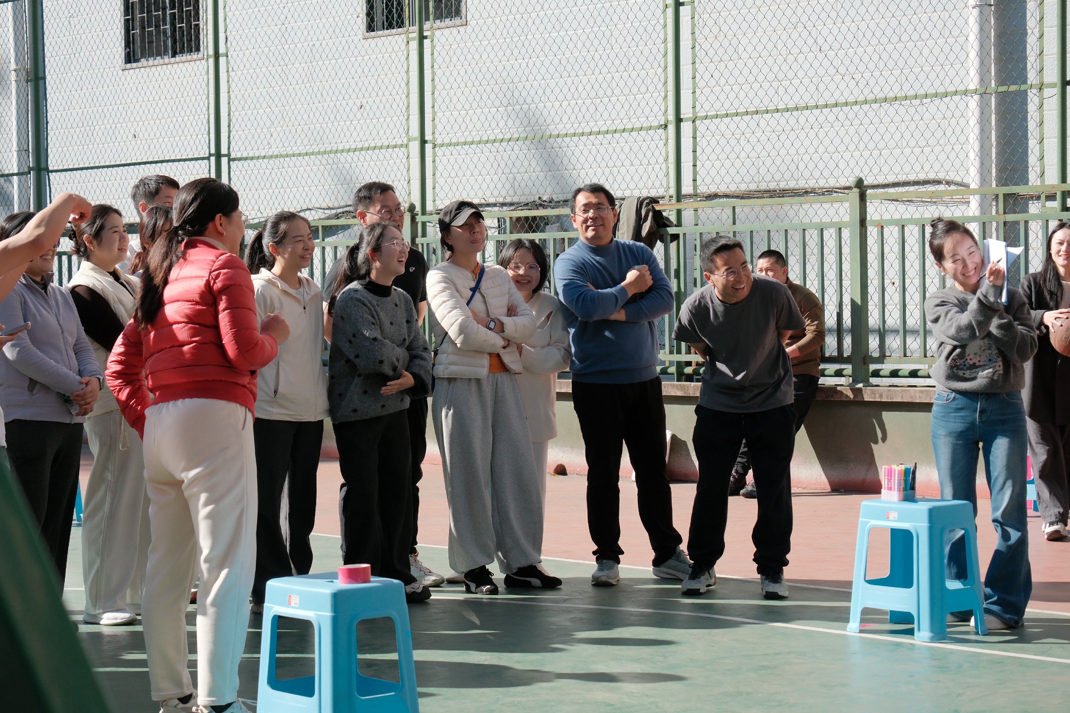 为让活动兼具趣味性与参与感,同时体现学院工会的“艺术运动”的特色,工会委员团队提前筹备,从场地规划、道具采购到赛程安排、规则制定,每一个细节都反复推敲、细致落实。此次赛事在往届趣味项目和半场篮球对抗赛的基本模块中,提升了趣味项目的“艺术性”,增加“你画我猜”的协同项目,同时邀请学院青年学子加入,开展师生友谊篮球对抗赛。既满足了教职工对竞技乐趣的追求,也兼顾了团队协作的互动体验。赛前,学生裁判组耐心细致地为参赛教职工讲解各项目规则、注意事项,工会还贴心准备了饮用水、急救包等物资,全力保障赛事安全有序开展。